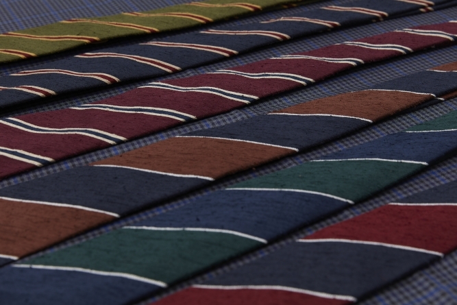 • MID BLUE & RUST STRIPE / NAVY HANDROLLED CASHMERE TIE
